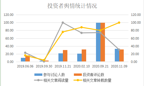 为再现投资者在退市过程中的心理表现,投服中心以东方财富网站和股吧数据为样本,创建了“投资者舆情热度指标”。经统计,自暴风集团2016年收购MPS事件为起点,至公司进入退市程序,投资者围绕MPS事件参与讨论人数和评论量呈现先增后减趋势,于2020年9月21日,即暴风集团发布退市公告这一时点上达到峰值;相关文章阅读量和文章转载量在2019年11月21日,即公司公告财报净资产为负时达到峰值。整体而言,投资者群体对于暴风集团退市重大事件的关注度及反应具有一定的滞后性。上市公司信息披露的不充分性无疑是主要原因。