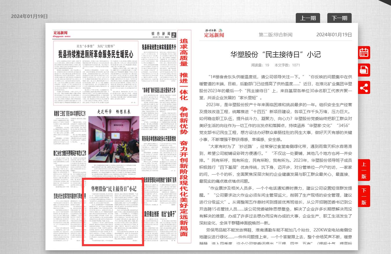 《滁州日报-定远新闻》1月19日二版:yd2333云顶电子游戏股份“民主接待日”小记