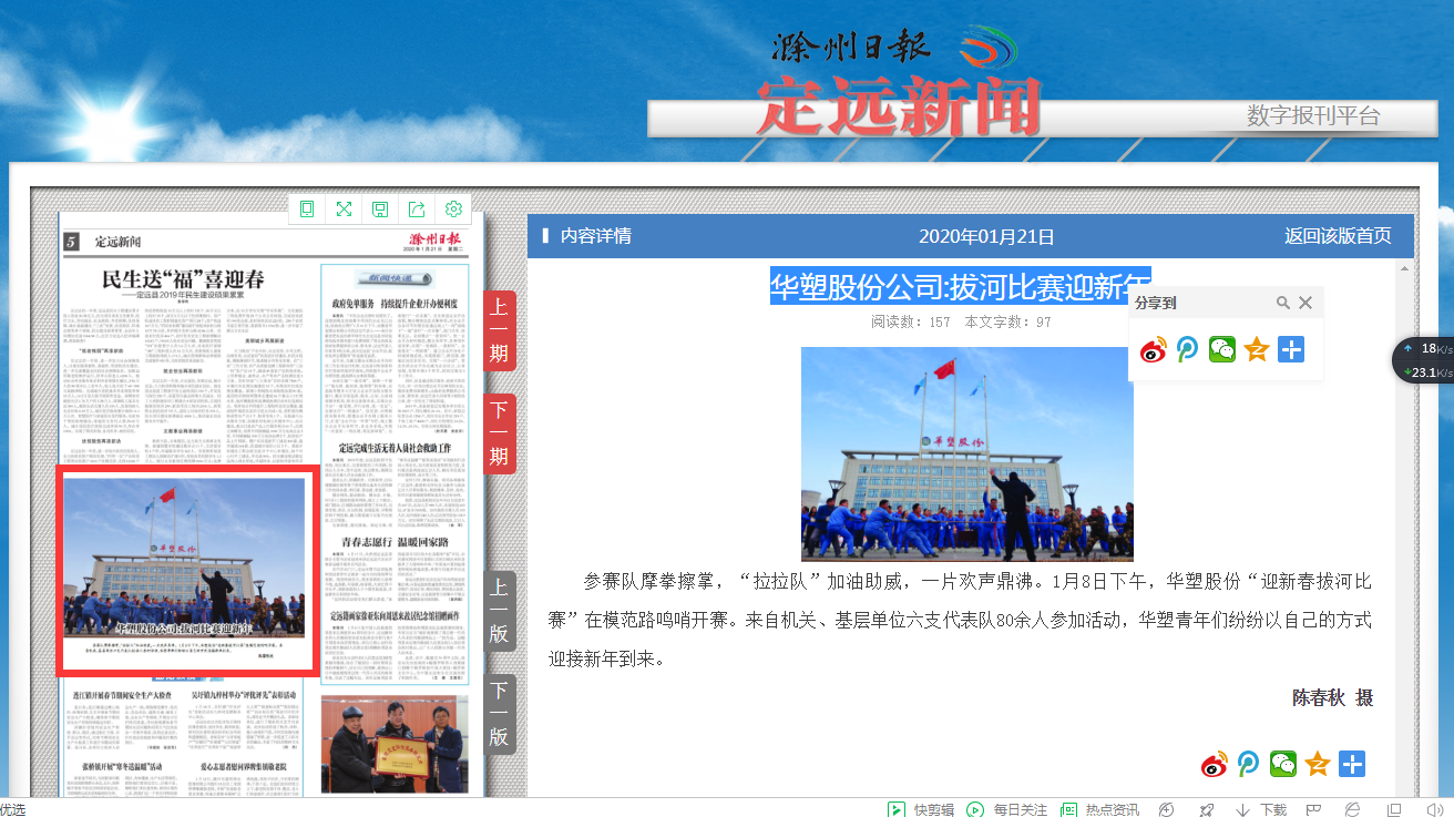 《滁州日报-定远新闻》1月21日二版:拔河比赛迎新年